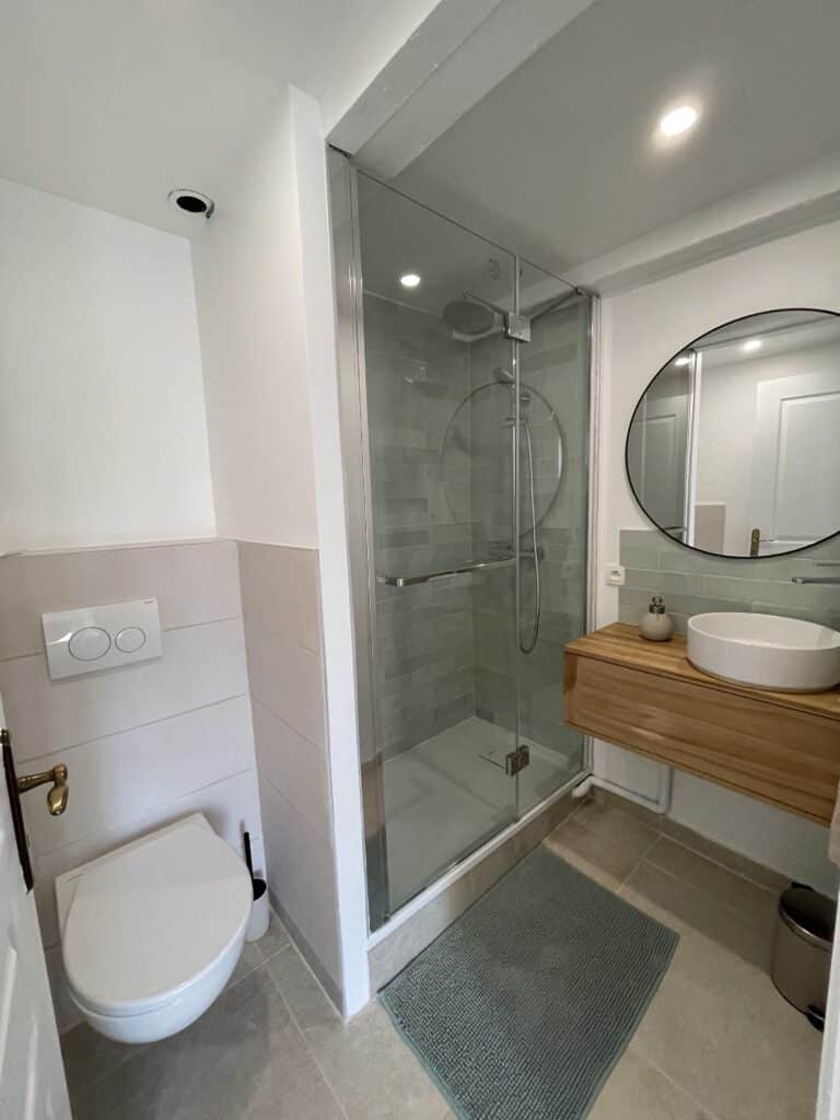 Chaque chambre donne sur une salle de bain privative refaite à neuf en 2025, équipée d’une douche, d’une vasque, d’un WC et d’u